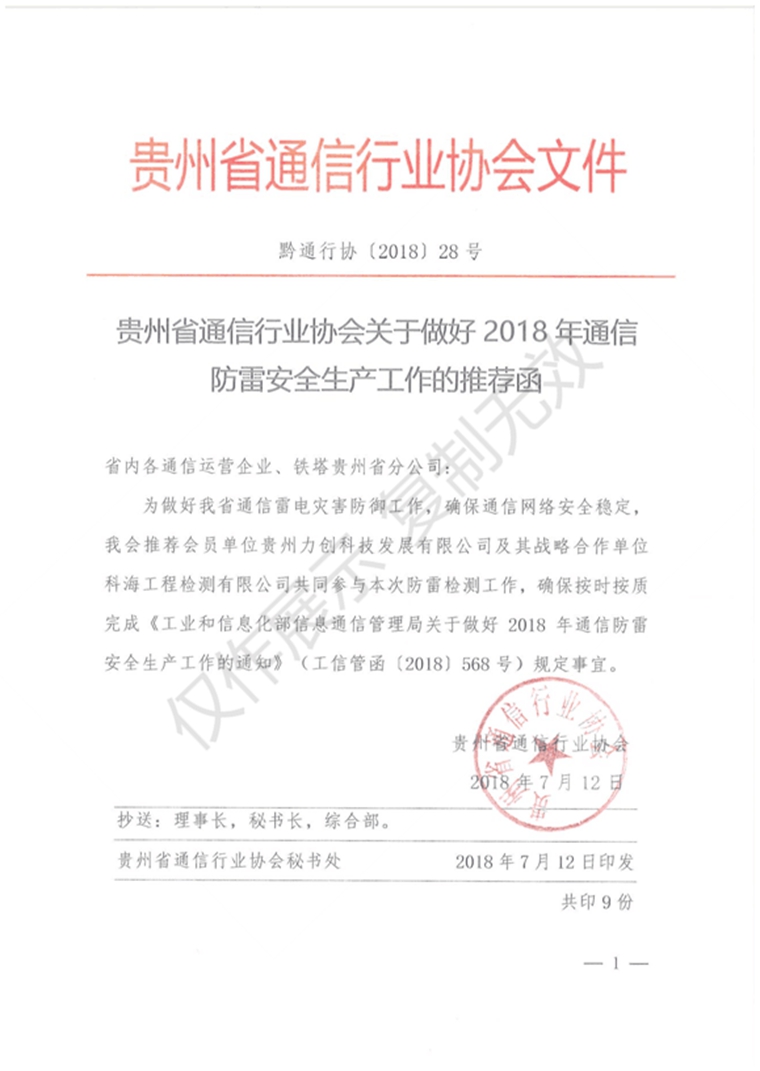 貴州省通信行業協會推薦函